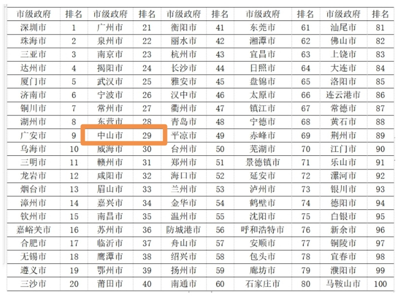 近日,北京师范大学政府管理研究院、江西师范大学管理决策评价研究中心、社科文献出版社在京联合主办第九届管理决策效率评价研讨会暨《2019中国地方政府效率研究报告》发布会,发布2019年中国地方政府效率排行榜。其中,广东位列2019中国效率“十高省”第4位;中山位列2019中国效率“百高市”第29位、广东省内排第4位。