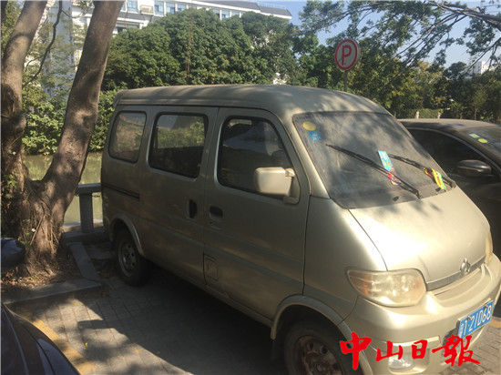 1月5日上午10点,记者来到现场看到,一辆深圳牌照的老款别克车停在雍景园商业街路段公共停车位上,车身上落满了厚厚的灰尘,其右前轮胎已经瘪了,车尾上有饭菜等垃圾,车尾下部周围地面上也有大量的饭菜等生活垃圾。