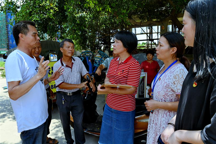 福建省福清市巡察人员在玉屏街道石井村向村民了解惠民资金发放情况(2019年7月24日摄)。新华社记者 张国俊 摄