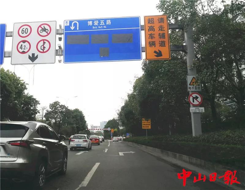◆右转入起湾道南行的车辆,须在博爱五路加油站或中山市司法局对开提前进入辅道通行。