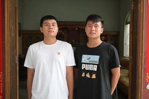 梁恩龙和梁恩城是一对亲兄弟,从小被父亲独自抚养长大,哥哥今年20岁,弟弟18岁。见到我们来采访,兄弟俩站得笔直端正,双手紧紧贴着裤缝线,表情严肃,颇有几分军人的气质。