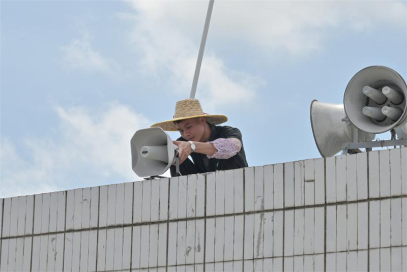 “一有台风或者下暴雨,我们村委会要先用电话通知到各个自然村的村民小组,由村民小组长再通知到各个群众,通知他们去到安全地方避险。“望着正在安装中的大喇叭,杨惠流笑着说,“现在安装喇叭就不同了,整个榄边的群众都可以通过高音喇叭听到,群众听到以后可以及时撤离、避险。”