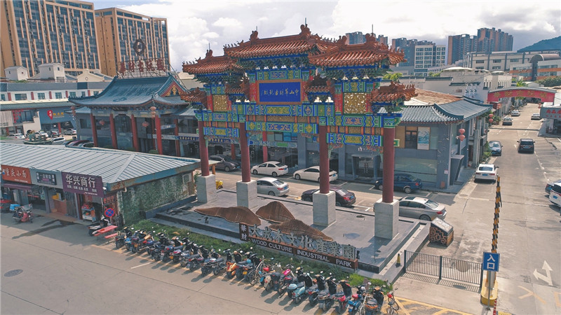 走进产业园,一眼便看到一座绣闼雕甍的牌坊,上面刻着“中山华财古玩城”七个大字,在光影重叠中,错落有致的古风建筑,柔和而独具美感,处处勾勒出隽永的东方之美。