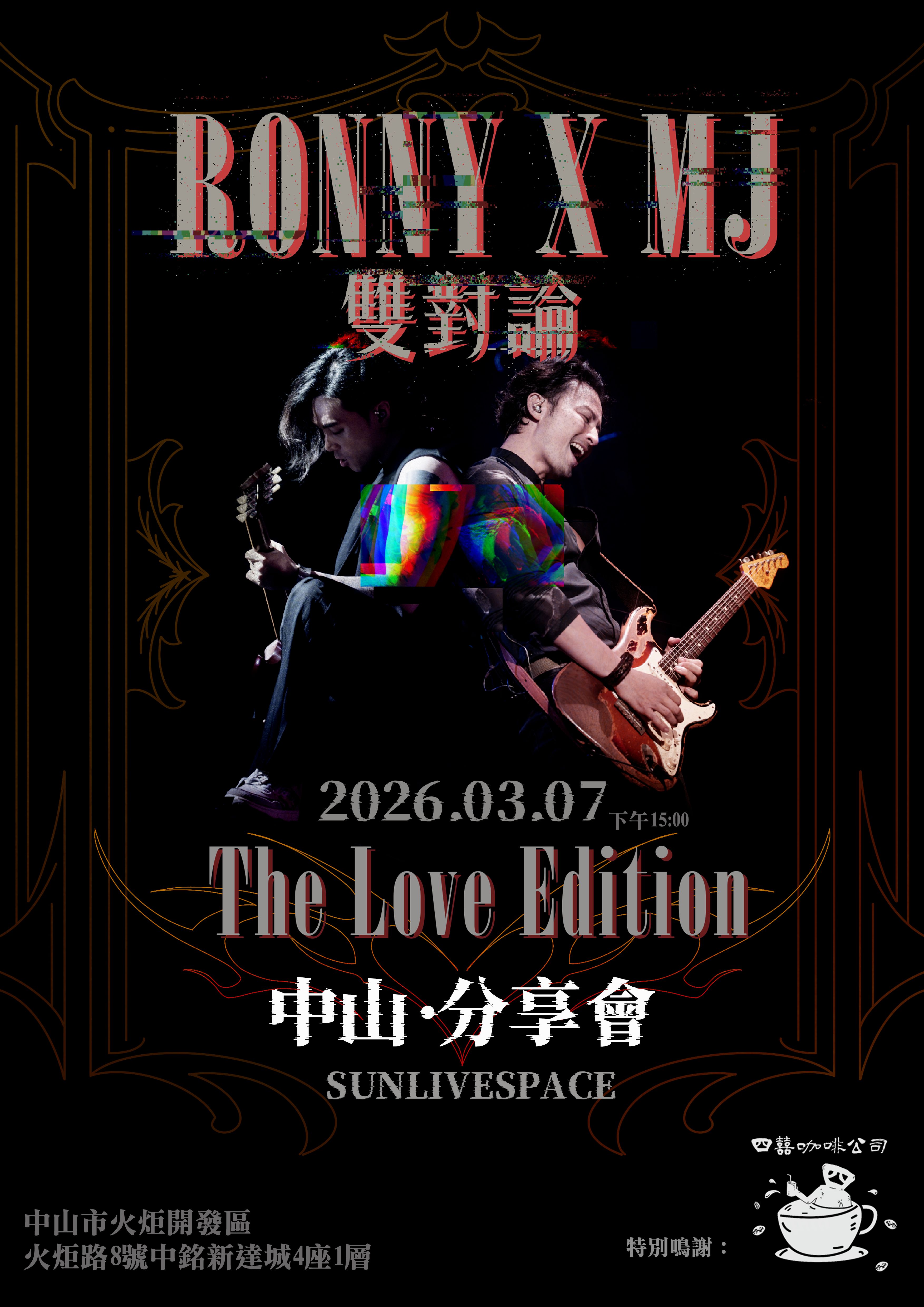 3月7日,香港Mr.乐队将在中山Sunlivespace举行“双对论The Love Edition” 音乐会,分享“Mr.式的爱情观”。MJ表示:“Mr.写的歌就是在讲述平凡,从我们的音乐中可以感受到,永远都是身边的事最能感动人。很多时候,爱或者希望,就藏在细节里面。”