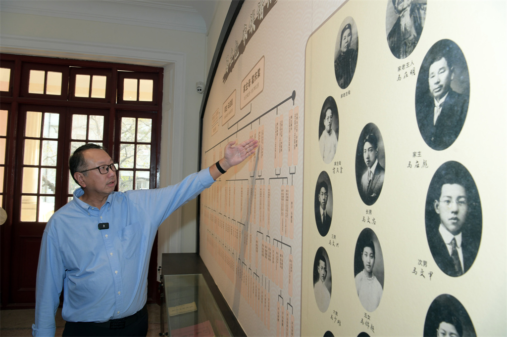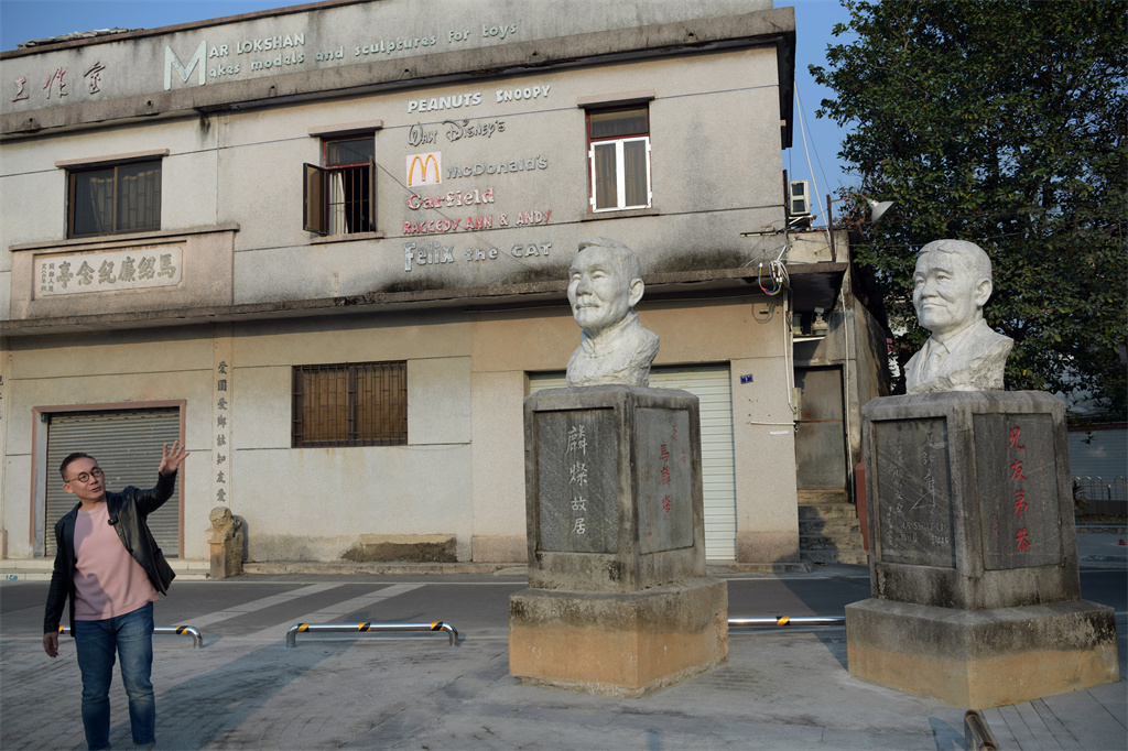 丨马量豪在马乐山故居手模纪念广场前回忆家族往事。